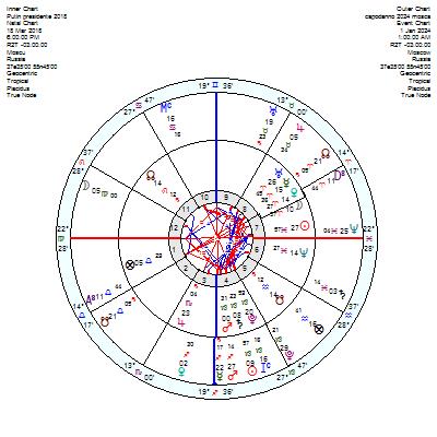 E non importa che Saturno in casa VI, in Pesci, congiunto al Nodo Lunare Sud, riporti a galla antiche rivalità da non consentire per quest’anno l’avvio di un sentiero di pace. Venere (simbolo di pace) in Sagittario, in III casa ha perso l’influenza di Giove e naviga in una via pressoché cieca. La popolazione rappresentata dalla Luna in XII, in Pesci, otterrà benefici e sussidi per l’avvicinarsi delle elezioni in Russia.